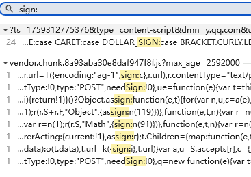 首先把玩一下 QQ 音乐的网站,全局搜索一下为 sign 赋值的地方: