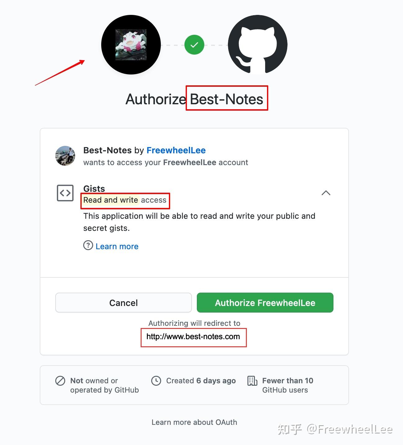 scope 对应的权限都会显示在授权页面,让用户清楚地知道自己即将授予 Best-Notes 什么权限。