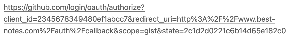 client_id—— 这个参数是帮助 GitHub Authorization Server 识别第三方应用的(在本文中就是 笔记 web app Best-Notes)—— Authorization Server 会在数据库中确认这个 client_id 是否合法;根据这个 client_id 预先注册的信息,向用户展示该 Application 的名字、图标、描述等信息。2)