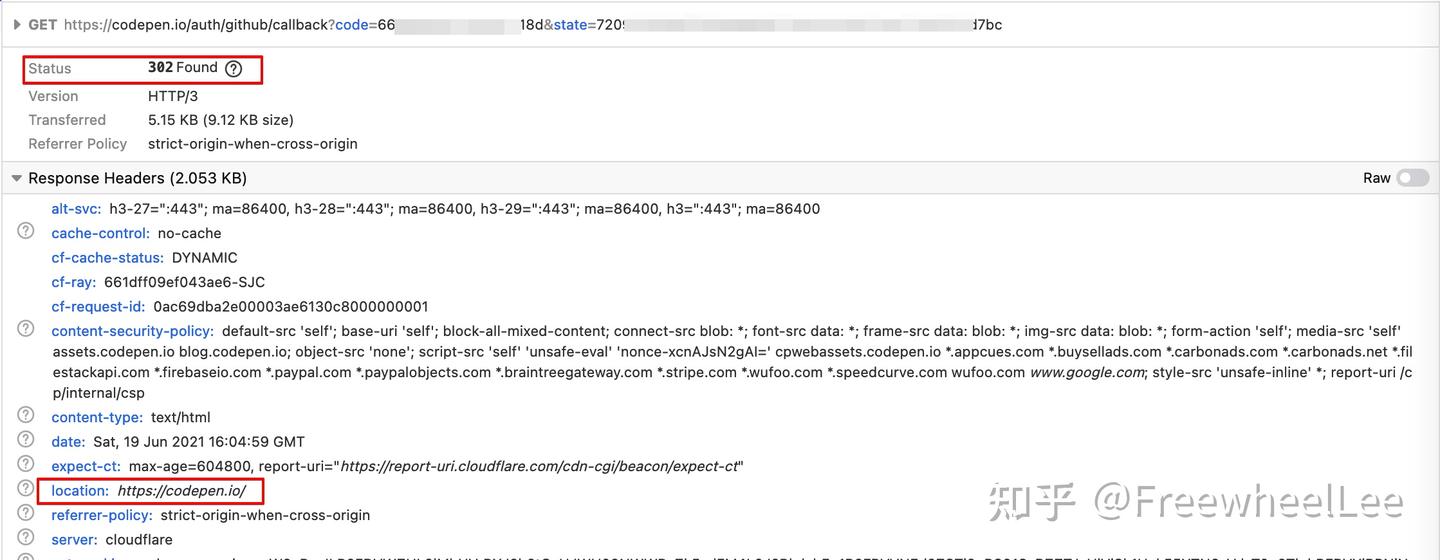 这次的重定向是 GitHub Authorization Server 发起的(URL 的参数值也是 GitHub Authorization Server 生成的)